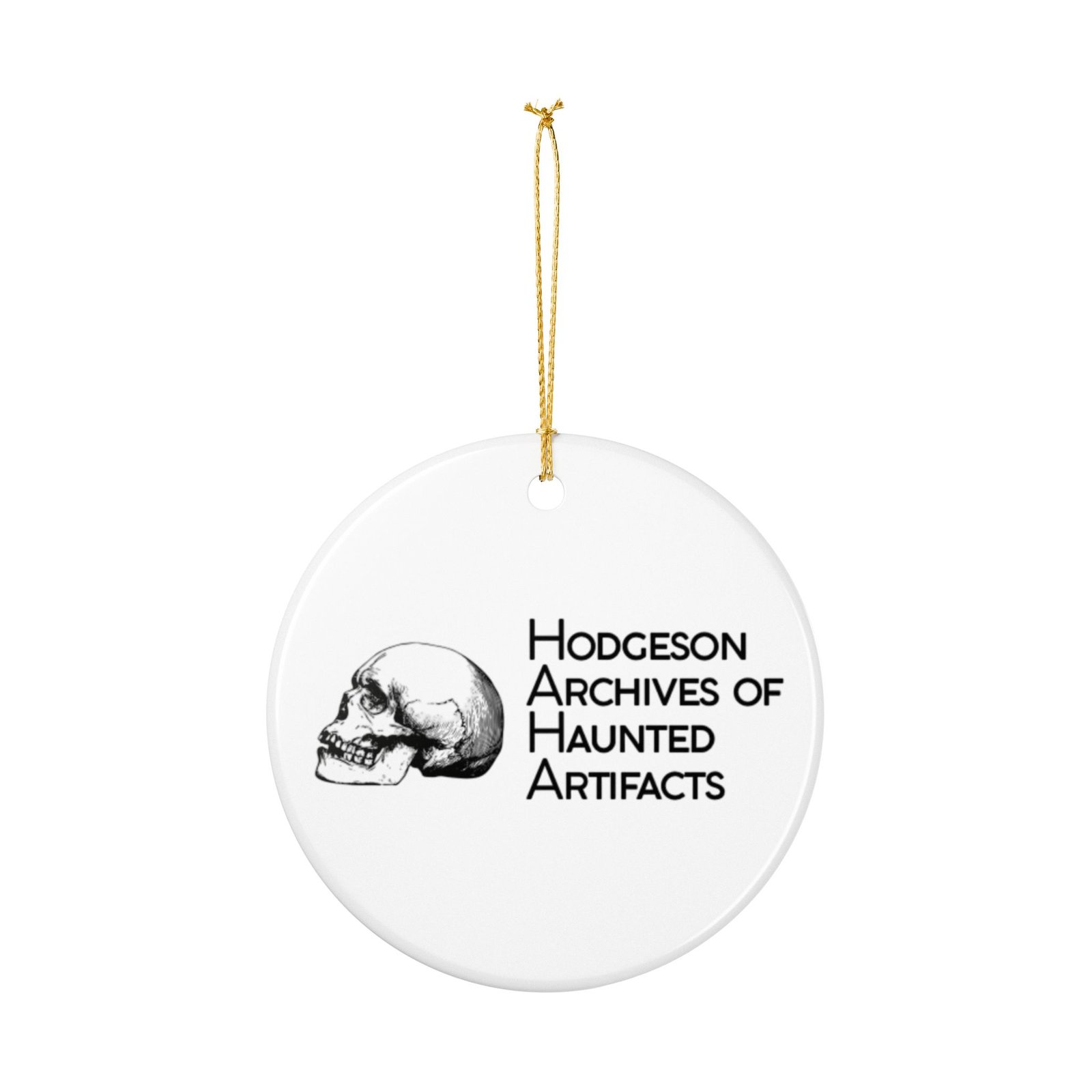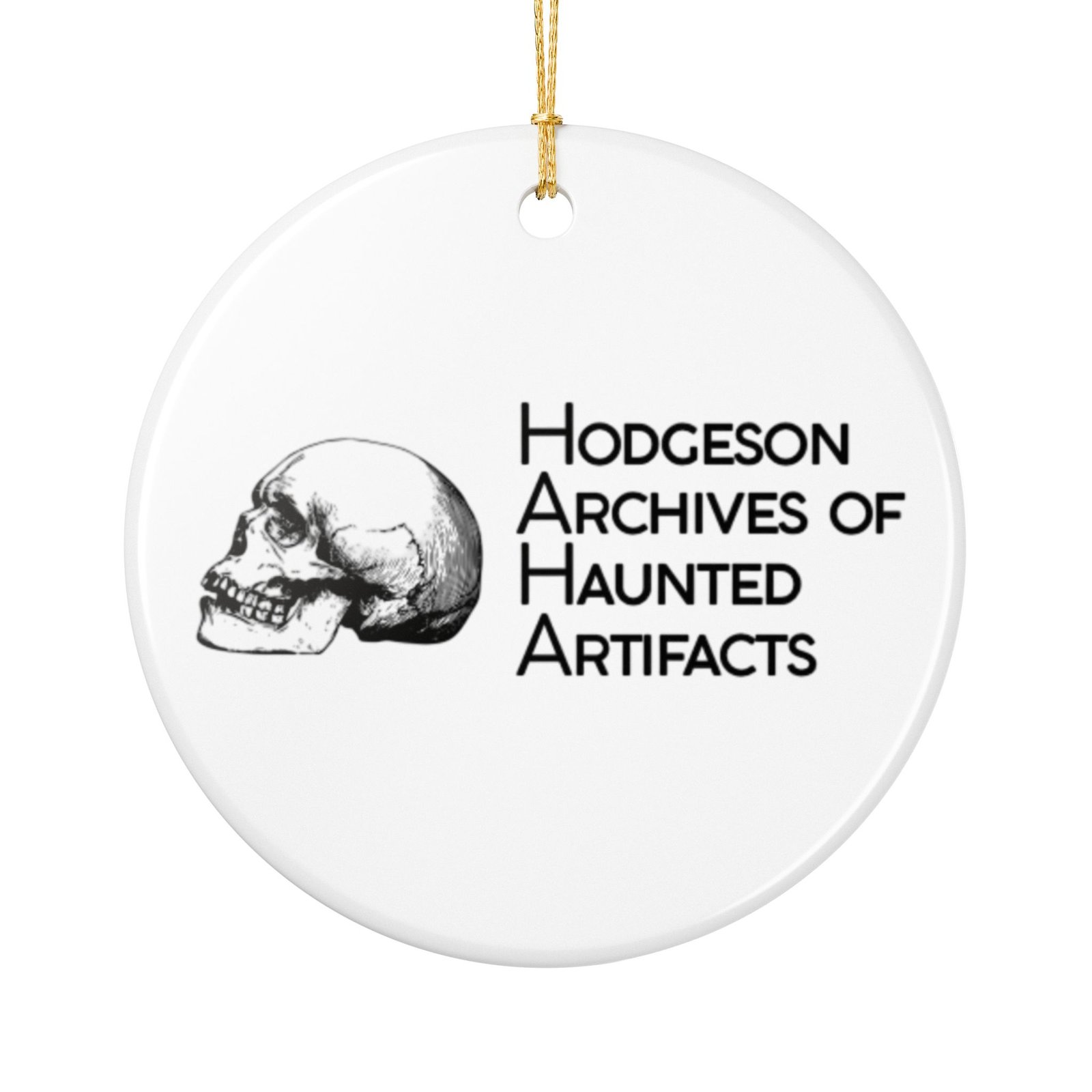 Add the HAHA to your holidays with this ceramic HAHA museum ornament! All proceeds benefit the Hodgeson Archives of Haunted Artifacts and their continued pursuit of advancement in paranormal research for experiencers like you. Beautifully crafted Ceramic Round Ornament, measuring 7.3cm x 7.3cm. .: Material: 100% Ceramic .: Includes gold string for hanging